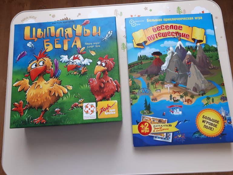 Цыплячьи бега, во время игры не сделала фото, но её и так, наверное, все знают. Очень интересный вариант мемори. Играли в первый раз. Игра была куплена мной от жадности по скидке, на волне "хочу все". После покупки я подумала, что мы её, наверное, переросли. Но как оказалось в процессе, не очень-то легко запомнить расположение 12 довольно похожих картинок. Вроде бы я и пыталась логические цепочки из них выстраивать в памяти, но мне это не помогло. Выиграла дочь, но и ей тоже было не просто запоминать. В общем, хороший тренажер для мозга в любом возрасте.