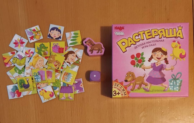 ▶️Игра-пазл "Растеряша" от @hobbyworld - Игру взяла себе на заметку ещё когда она не была локализована, все хотела сделать самой. И не смогла пройти мимо, когда увидела что игру локализовали. Хотя за это время моя дочка выросла, но главное игра не потеряла ещё свою актуальность. Игра от 3 лет, но можно и раньше. Конечно больше подойдёт девочкам. Каждый игрок выбирает себе героиню, которую будет собирать и кладет перед собой ее центральный пазл. Остальные раскладываем кругом. Подружки на пикнике растеряли свои вещи, но собачка Бобик поможет им их найти. Бросаем кубик, на гранях которого цифры 1,2,3 и звёздочка джокер, и начинаем поиски. Кто первый собирет свою Растеряшу, тот и побеждает.