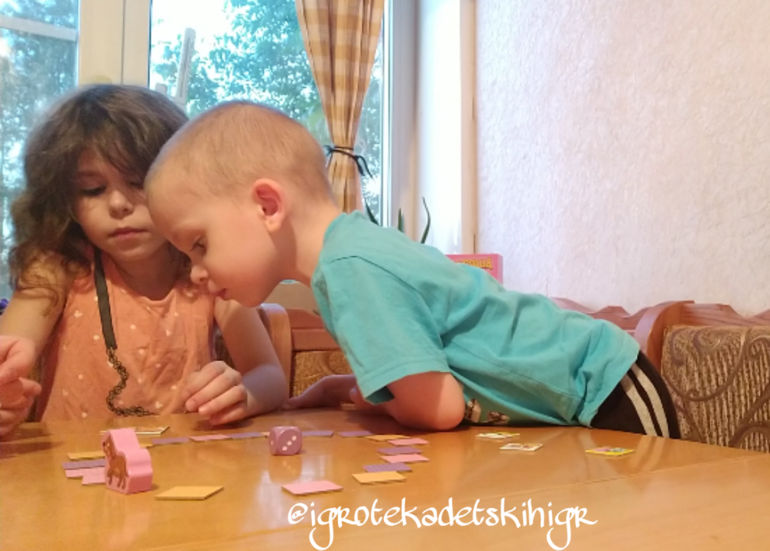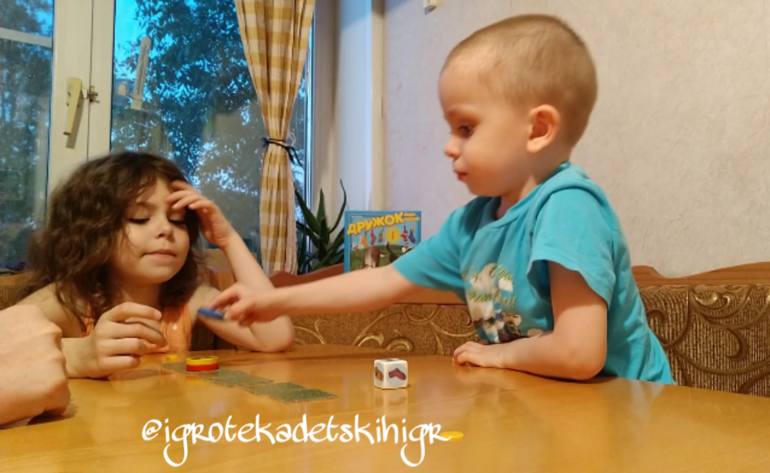 и по ощущениям эта игра - клон любимой ходилки из Веселых картинок в моем детстве. Игра, несмотря на большое поле, получается очень динамичная и азартная. Мы в ходилки всегда играем "с отходами", отходим от финишной клетки назад, пока не выпадет нужное для завершения игры значение на кубике. Это тоже придает остроту игре, можно успеть догнать и даже опередить лидера, если ему долго не везёт с кубиком на финише. В этой игре у нас такое бывало.
