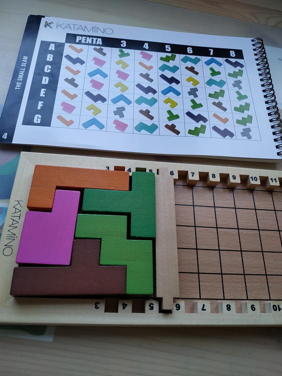Ее сложно назвать настольной игрой, это конечно головоломка для одного. Покупала очень давно в первую очередь для себя, зато сейчас нейропсихологи хлопают этой игре в ладоши и всячески ее восхваляют. Все уровни я не прошла, и дети не пройдут... А взять пораскладывать, покрутить пентамино с удовольствием. До 5 уровня легко доходят, потом начинается нервяк и бесилово....
