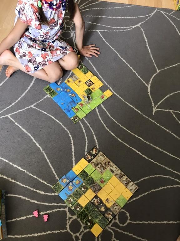 В Лоскутное Королевство играли опять 7*7, полюбился дочке этот масштаб 😄, несмотря на то, что у меня королевство получилось целым, а у дочери с пропастями, победила по очкам она. Выиграть у неё становится все сложнее.