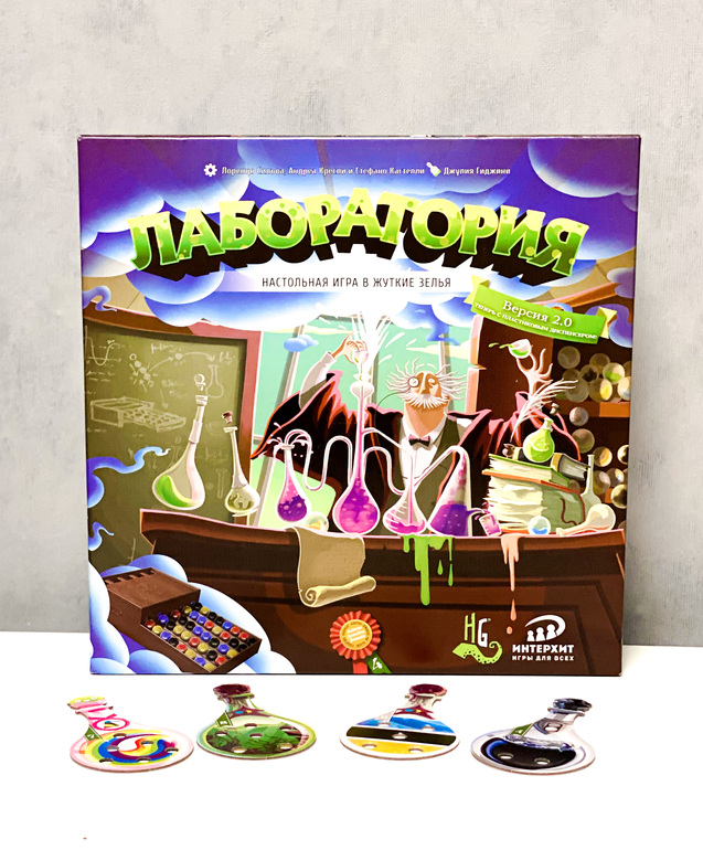 Лабаратория для нас игра медитативная, мы совсем не гонимся за очками, свойства зелий тоже забываем использовать, причём и я тоже. Нам нравится сам процесс, выбор шариков, их стук, выкладывание на колбы. Играем или до конца грамот, а их всего 4 на двоих, игра быстро проходит или до конца колб, если хочется продлить игру. Мне даже в конце очки считать не хочется, так же как и в Диксит не важен результат, важнее процесс.