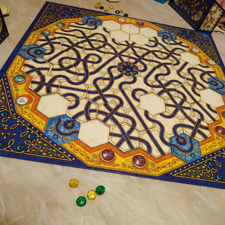 За один вечер сыграли сразу три раза, на следующий день ещё раз несколько. Игра очень понравилась, лёгкие понятные правила и она удивительно быстрая на удивление. Камушки хочу заменить все таки стеклянными, дети сказали так она станет ещё эффектнее. Очень качественные и яркие тайлы, запутанные дорожки, очень нравится двигать детям камушки по дорожкам.