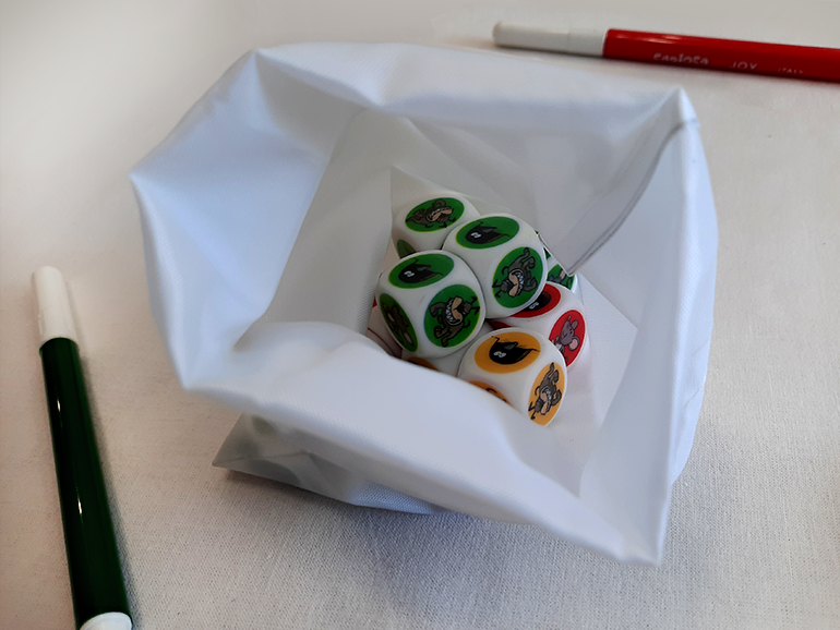 Для начала игры складываем все кубики в мешочек и перемешиваем.