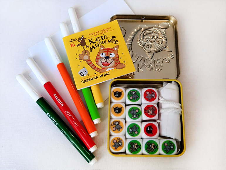 На гранях нарисованы забавные мышки, таинственные норки и злые собаки.