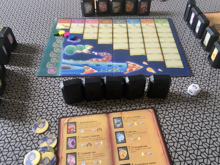 Чудеснейшая семейная игра! Одна из моих любимых. Мы первый раз играли вчетвером, было здорово. Мне очень понравилось. Чаще использовались трусливые действия. Большим составом немного другие ощущения. Мне удалось забраться дальше всех, таким образом я заполучила самые заманчивые вознаграждения за доставку зелий. Нашу гостью я обогнала всего на пару шагов. Дочка была третьей, сын отстал серьёзно. Игра понравилась девочке. Она с удовольствием сыграла бы ещё. Сыну было трудно, особенно в начале партии. Мы давно не доставали коробку и он позабыл правила. Ему потребовалось время, чтобы влиться в процесс, а вот время в этой игре на вес золота, так как не сильно удачных ходов гораздо больше, нежели удачных. Хотим повторить на днях.