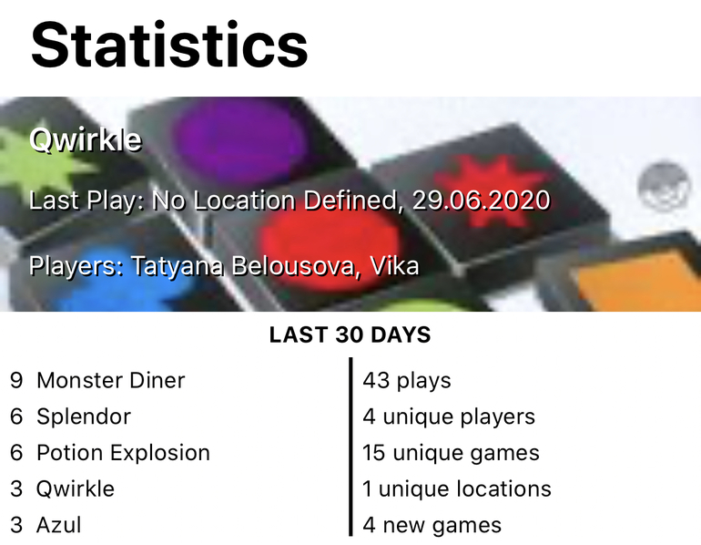Игровые дневникиПришло время подвести итоги месяца. Для меня это стало уже небольшой традицией. Самой всегда интересно смотреть статистику партий, вспоминать во что играли. Июнь меня неожиданно удивил и обрадовал.