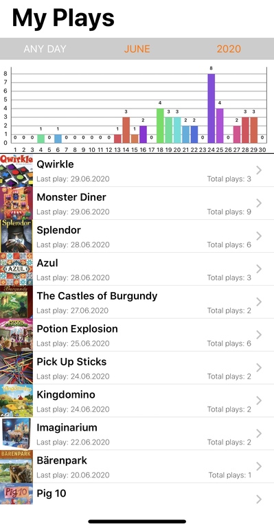 Однако во второй половине месяца все изменилось. Погода испортилась, дни рождения закончились, пришло врем играть. И мы играли. Почти каждый день да не по одной партий. Писала про наш рекордный день аж с десятью партиями. Так получилось, что в июне мы играли больше, чем в любом месяце до этого. Кто бы мог подумать 🤷🏻♀️. 43 партии против против 27 в мае и 33 в апреле.