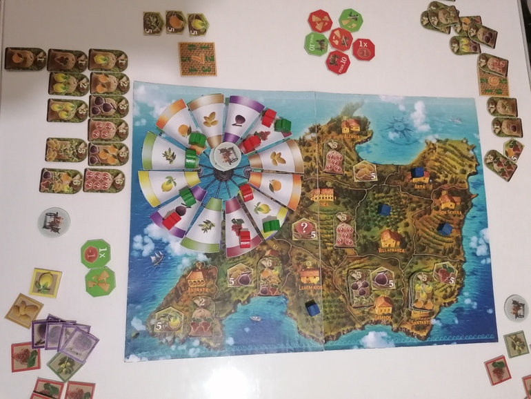 Первой игрой на нашем игровом столе была Finca. Я приметила её среди летсплеев Безнала и решила изучить получше: особо плохих отзывов я на неё не увидела и садово-огородническую тематику я люблю. Да, процесс там незатейливый, но "ведь и такие игры должны быть в коллекции", - подумала я и взялась за самодельничество. Вот такая она у меня получилась: