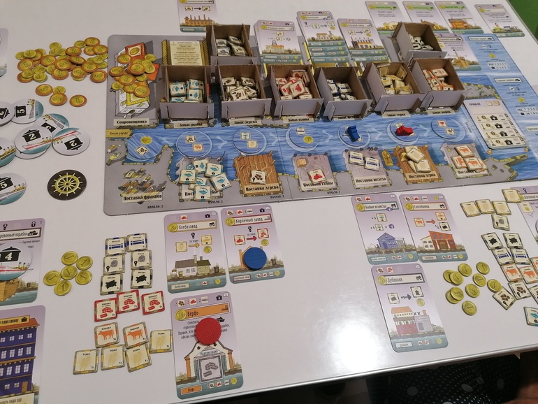 И второй тяжеловесной игрой стал Гавр. Хотелось не очень длинной партии, поэтому решила убрать особые карты. В правилах написано, что дуэльная партия при стандартной игре длится 45 минут, и это меня более чем устроило. Но! Мы играли два часа! Два! И я бы не сказала, что мы сильно зависали над ходом. Вполне бодренько играли. В общем, не знаю, когда же я наконец попробую особые карты. Даже боюсь представить, на сколько тогда растянется партия😱