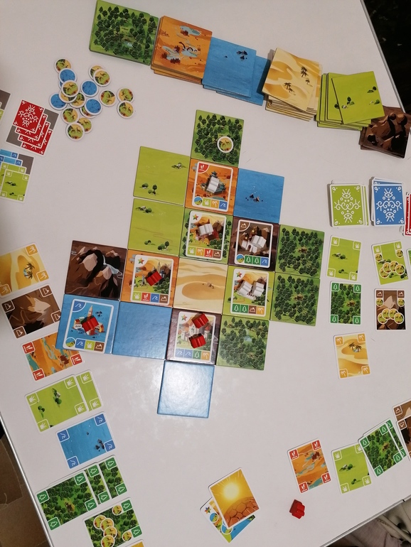 Игра очень динамичная: миплы то появляются на тайлах, то снова уходят в запас. Взаимодействия в игре много: всё строится на общем поле, поэтому много толкотни даже при игре вдвоём; к тому же картами стихий можно пакостить друг другу. В общем, играть нескучно и есть, над чем подумать)🤓