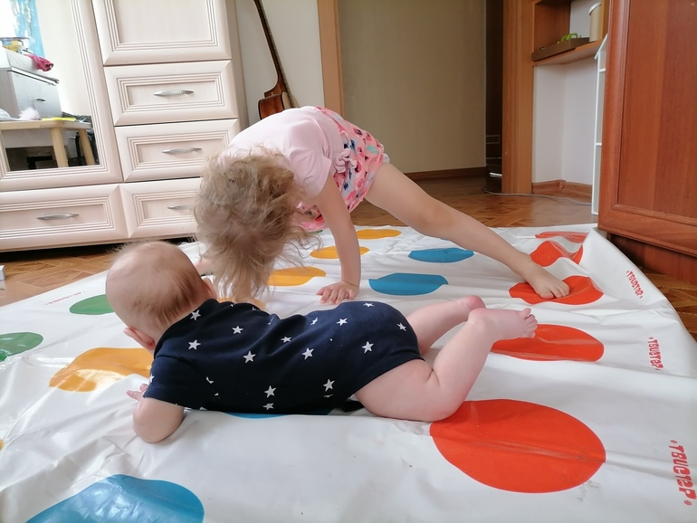 Первым делом попробовали поиграть в Твистер, лежавший на полке лет шесть, если не больше. Весёлых молодых компаний в доме давно не было, а если были, дело не доходило до игр. А тут я решила, что дочка уже доросла...