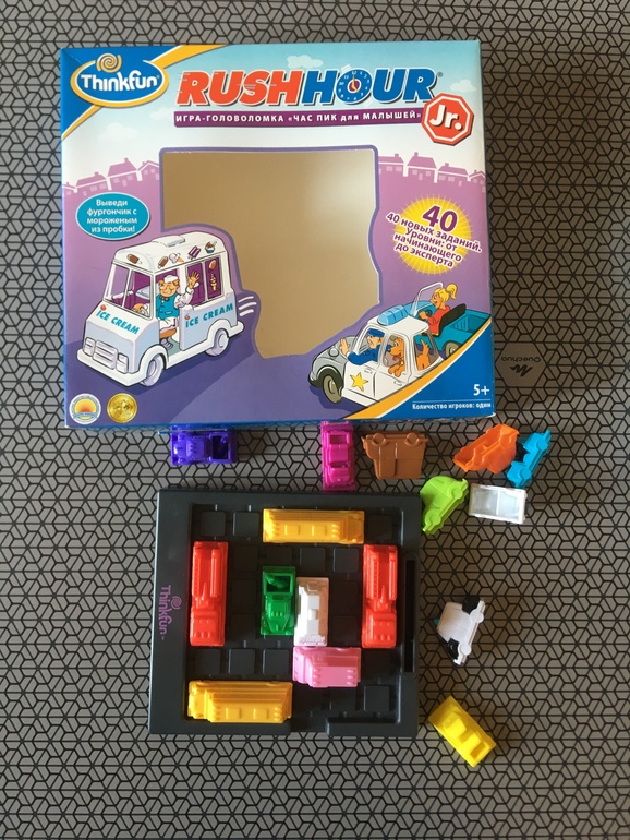 Хотя марафон по этой игре уже и закончился, я допишу, т.к. сегодня сыну ее подарили. Вечером, когда ушли гости, мы сели ее решать. У нас версия для малышей, 5+, несложная, поэтому сыну в его 4 вполне можно начинать. Первые два задания мы прошли вместе, я показала ему, как нужно действовать, чтобы выпустить фургон с мороженым и как можно двигать машины, а как нельзя.