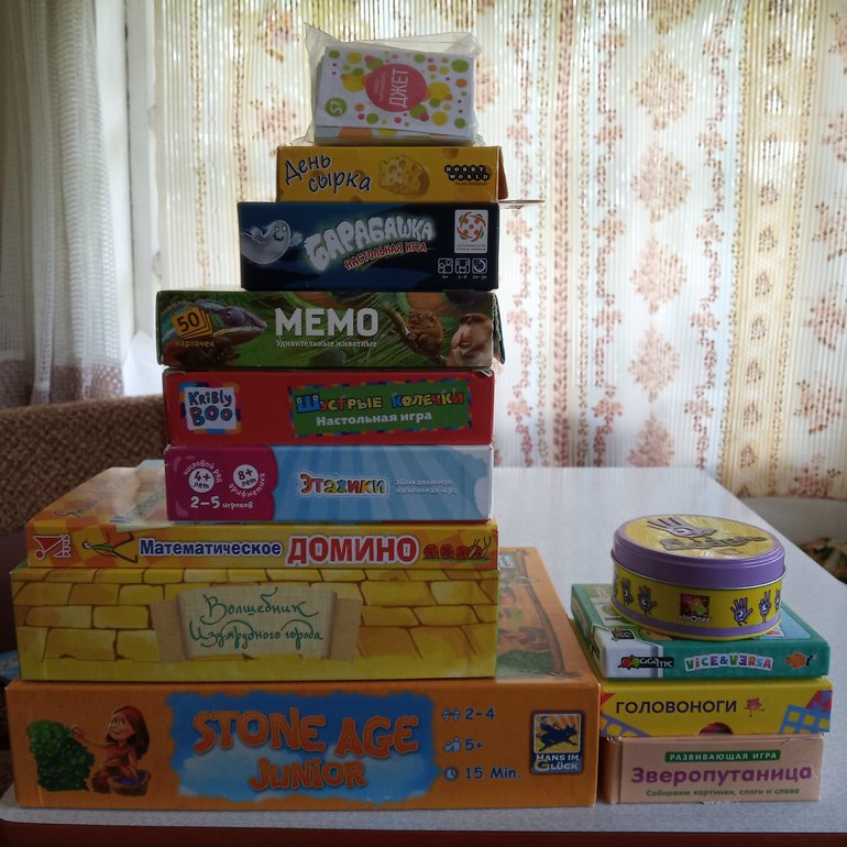 У взрослых стопочка тоже небольшая. Играем в основном по выходным, когда родители приезжают, а дети уже спят.