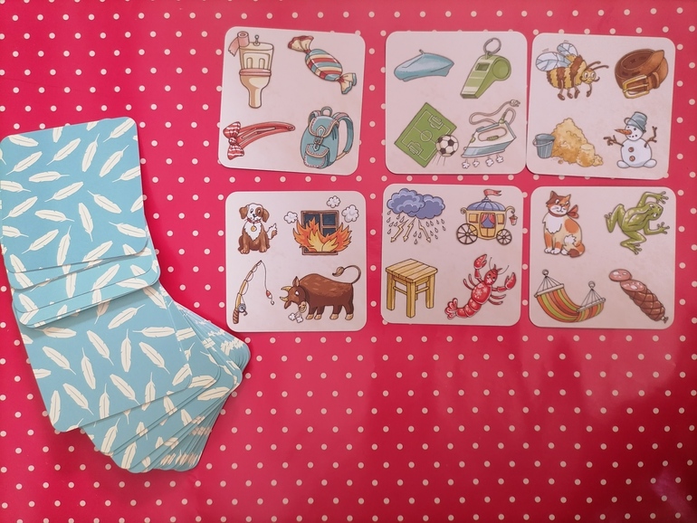 Пнп я всё же нарезала и отнесла свекрам - будем в двух домах играть. Пробные партии тоже прошли на ура: дочка играет пусть не на равных, но с небольшим отставанием, мне нужно только изредка отводить в сторону глаза - и пара рифмующихся слов будет найдена без подсказок. Классная игра, необычная, и попала в струю.