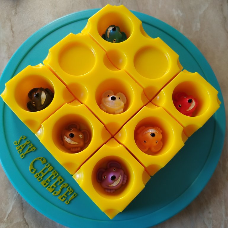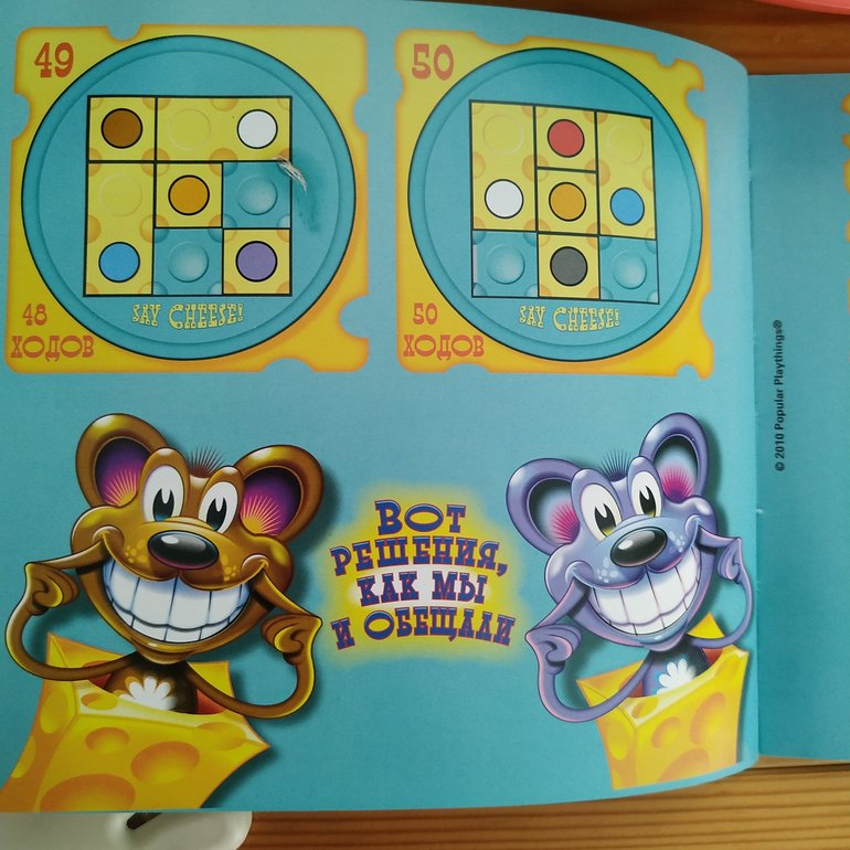 У мышек улыбки совсем не мышиные. Неприятно они улыбаются. У нас от этого издательства есть головоломка Дядюшкина ферма. Если честно, качество разочаровало , особенно, в сравнении с бондибон. Плохо прокрашенные персонажи, фигурки не фиксируются при выставлении на поле и съезжают. В общем, недочётов много. Ещё у этого производителя есть головоломка про ёжиков. Я давно ещё купила аналог, но из-за качества играть в него не хотелось. А потом, получив ДЯдюшкину ферму, я поняла, что поддельные ёжики от настоящего дядюшки ничем не отличаются. Пока никакие другие игры от этого производителя купить не тянет.