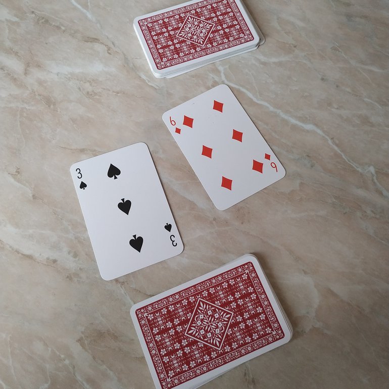-игроки одновременно берут верхние карты со своей колоды и кладут в центр стола лицевой стороной вверх.