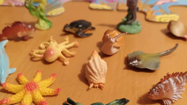Задача игроков быстрее других найти морских обитателей с карточек на поле. Самый быстрый получает фигурку или сундук. Кто быстрее соберёт 5 фигурок или два сундука побеждает.