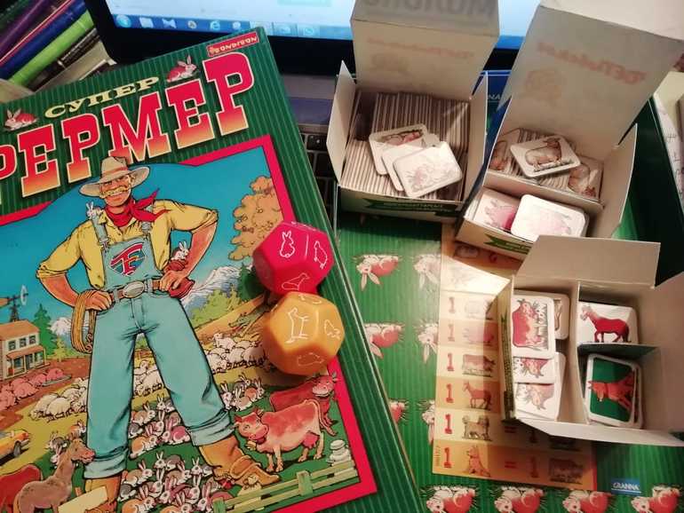 Потом случился перерыв на санаторий на 2 недели, в результате чего игры снова покинули свои коробки и отправились в санаторий: ведь не знаешь, какие люди тебе встретятся на пути (для каждой компании можно подобрать подходящую игру, главное, чтобы эта игра оказалась под рукой). Компанию там мы нашли, играли каждый день, дочка особо активно. Началось, как всегда, с "Руммикуба", и всё - не играющие в игры люди, стали ооочень играющими. Играли каждый день, начинали обязательно с "Руммикуба", потом внезапно зашел "Супер Фермер"
