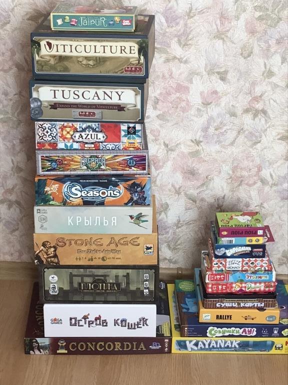 Из взрослой стопки Вашей только в азул играла, все остальные пока лишь на фотографиях разглядывала. А вот детская стопка более близка). Из этих игр мне и самой очень нравится играть в Черепашьи бега, магический лабиринт, Ралли и Цыплятки от Джеко. Такие игры хорошие, часто и сама их предлагаю детям.