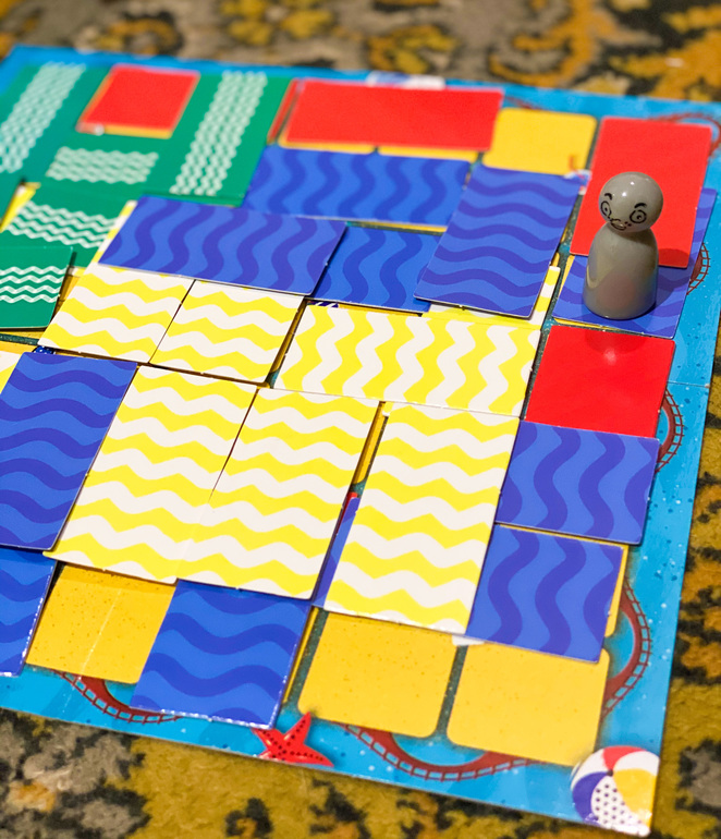 Перейду к игровому процессу и впечатлениям. Сначала, конечно, ходить довольно скучно 😄. Шагаешь, кладёшь полотенце, шагаешь, кладёшь полотенце, шагаешь ... Когда поле пустое, то никакого азарта или расчета, или стратегии мы не почувствовали. А вот как только оно большей частью стало покрыто полотенцами, вот тут пошли эмоции. Когда я первый раз остановилась на ковре из дочкиных полотенец, то мне пришлось сразу отдать ей аж 15 монет. Как она обрадовалась 😂.