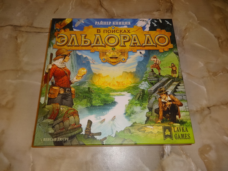Нам понравилось, хоть и не евро. Вроде и нет в игре ничего особенного, а зацепило. Цель игры- достичь ворот Эльдорадо. Игра построена на очень простой механике декбилдинга, то есть колодостроя. Имеется изначальная одинаковая для всех колода из 8 карт, у каждого своя, и она крутится рандомно. То есть, перемешиваем свою колоду по мере её окончания, и каждый раз вытягиваем по 4 карты на руку, которые и разыгрываем в каждый свой ход. Далее путём покупки более сильных карт и чистки колоды ( избавления от слабых карт ), стараемся сделать свою колоду оптимально эффективной и первыми достичь ворот Эльдорадо.