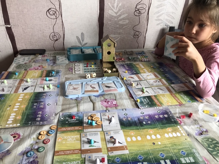 В обе игры дочь выиграла. В билете мне банально не хватило вагонов на последний маршрут, а в Крылья дочка играет уже очень неплохо и если карты ей идут, она может этим пользоваться. Больше всего меня радует как дочь лихо подсчитывает сумму очков на карточках птиц в конце игры, где можно ещё так ненавязчиво потренировать устный счёт в пределах 40?)