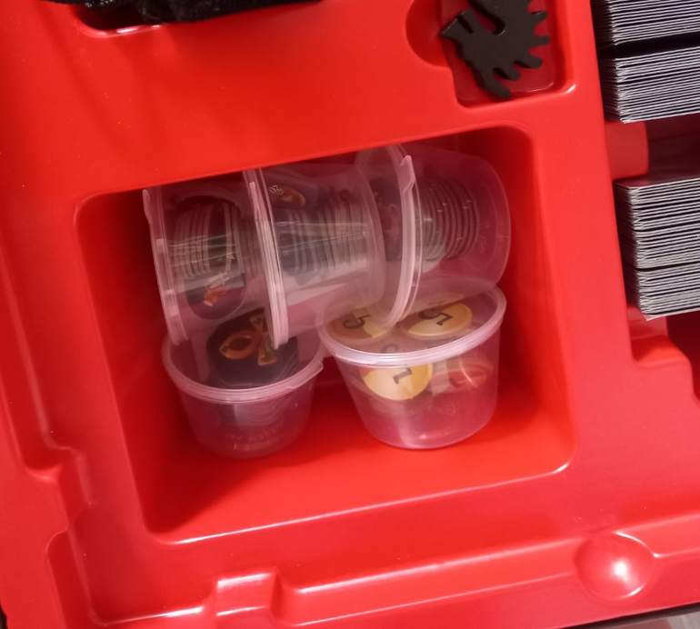 Карты вроде не так сложно подготовить, там же в родном органайзере разделено, после игры я сразу их складываю на место. А вот бесконечное вытряхивание жетонов из пакетов меня расстраивает
