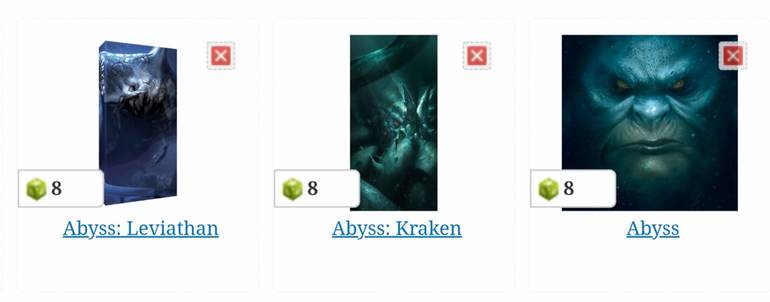 Единственный нюанс - игра языкозависима. Но т.к. вся информация открытая, то достаточно одного человека, владеющего английским. Суть игры в пресловутом сборе сетов ради сетов и т.д.😁😁. Это семейка с некоторым рандомом в выходе карт. Есть любимый Каталой аукцион, поэтому на двоих будет достаточно уныло. А вот от троих идёт очень бодро. Основная игра очень даже хороша, хотя дополнения здорово разнообразят. Кракен добавляет контрабандистов и чёрные жемчужины - новую валюту, которая хороша в начале, но очень опасна в конце. А с Левиафаном появляется азартная охота на чудовищ. В общем для того, чтобы провести приятный вечер в кругу семьи, Бездна более, чем хороша. Очень красивая и не очень сложная.