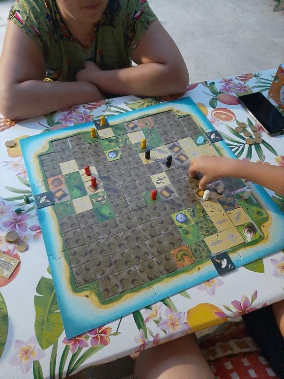 Вчера на троих разложили Шакала. Сын очень просил. Мы придумали хоумрулы, которые лишили игроков взаимодействия, но значительно ускорили процесс. Во-первых, ходим тремя фигурками за ход. Во вторых, золото идет в зачет сразу, без носки на корабль. Дело в том, что сын саботировал процесс носки абсолютно и полностью, соответственно проигрывал. Ему нравится именно "исследовать" остров. Пока будем играть так, а дальше как пойдет)
