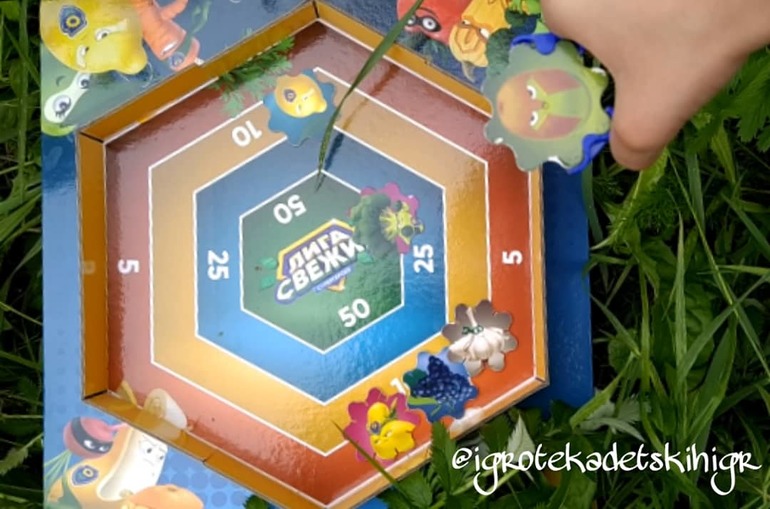 На дачу нам в этот раз бабушка привезла игру "Лига свежих супергероев" от магазина Лента.