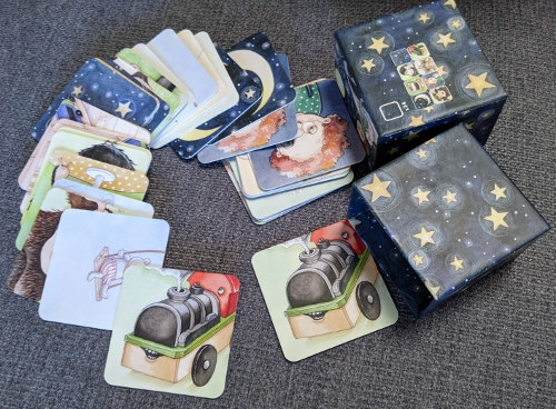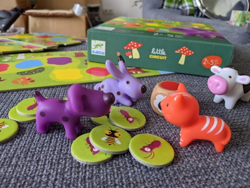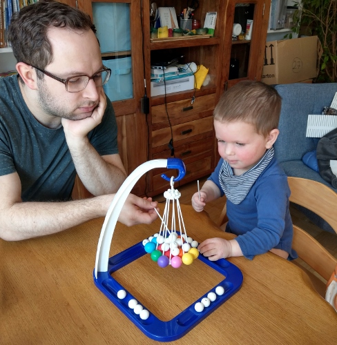 я не одна такая значит. Я немецкий понимаю, но правила не понятно написаны как-то. Поэтому да, играет сын сам. Еще ему нравится (и он сам придумал такое правило), что в конце игры бросаем кубик, и какой цвет выпал, элемент такого цвета можно убрать в коробку