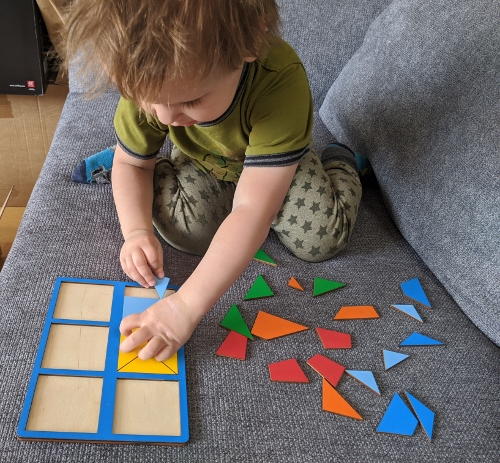 Квадраты Никитина первый уровень складывает сам, перешли на второй, тут еще подсказываю