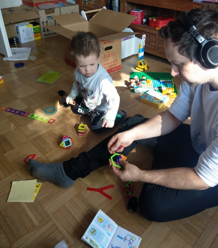 У нас разделились игры, в одни играет только папа, в другие только мама, ну и есть настолки ( и паззлы), в которые мы оба играем с ребенком. Сначала покажу настольные игрушки, в которые сын играет с папой. Это в основном конструирование, я не люблю такое, тот же лего например.