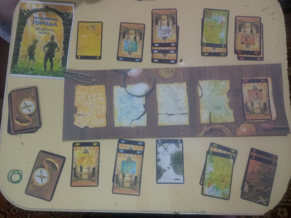Еще одна ночная проба. Игра хороша, конечно. На пустом месте интриги похлеще чем у Малахова - кто же станет победителем неясно до последнего. Визуально вроде ведешь по всем параметрам, а тут Оп!-Хлоп! И ты лузер. Первая игра (изучение правил) началась как-то типа - и что? И это все? Но ближе к концу приходит осознание - Опа! Карты в колоде заканчиваются, а на руках их еще куча! А 8 карт не набрано нигде! Только пари может спасти. В общем, закончили в первую игру в полной уверенности - теперь-то все понятно, как надо играть! Начали играть и что же? Ничего не понятно! 😊)))) Третий раз особо от второго ничем не отличился. Игру убрали - ребенку явно рано. Но для остальных напомню правила вкратце - надо набрать больше всех очков. На руках постоянно не меньше 8 карт. Надо собирать стрит-флэш из не менее 8 карт. Желательно перед этим заключить пари - это принесет нехилый бонус при подсчете (пари входит в количество карт). В свой ход надо одну карту выложить, одну взять. Когда колода закончится, с ней закончится и игра. Как-то так. При чем тут Затерянные города? Ну, картинки на картах такие. И предыстория про экспедиции.