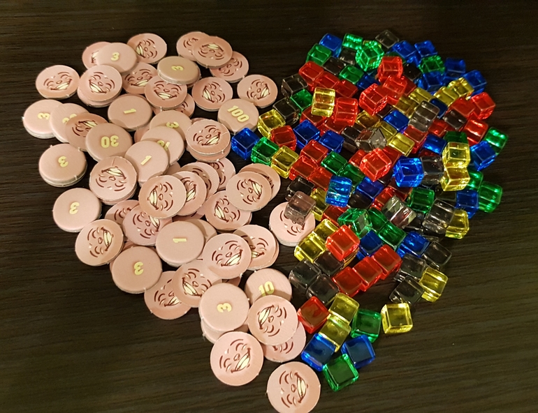 Ещё на этой неделе неожиданно быстро получили с Али посылку с капсулами для Шарлатанов. В игре пока не испытали, но по первому впечатлению капсулы понравились, правда некоторые жетоны приходилось вставлять с небольшим усилием.