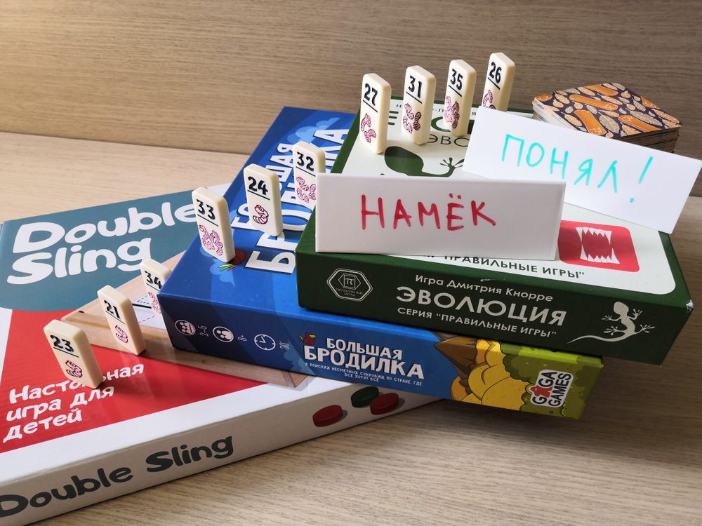 Намёк понял! Слово - это одежда наших мыслей... (Максим Горький). Для меня эта игра открыла внутренний мир старшего ребенка. Ну, не совсем открыла, приоткрыла чуток занавес этого ежика в пубертате)) Он, конечно, тот еще уникум. Любит пофилософствовать о причине и начале вещей. Вот например, я как нормальный человек на слово "стекло" пишу подсказки "прозрачное" и "окно", а ребенок "жар" и "песок". Поняли намёк? Стекло делают при высокой температуре из песка.... Догадались бы по таким подсказкам о чем речь?)) Интересная игра на ассоциации, которые можно выразить только одним словом. Игра также отличается от подобных тем, что если игрокам приходит на ум одна и та же подсказка, то она удаляется из игры. Т.е. надо быть изобретательным, но не перегнуть палку. Порадовало, что можно играть втроем, а то часто подобные игры рассчитаны на большое количество игроков.