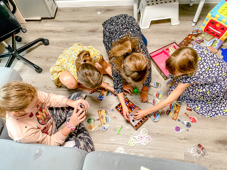 А теперь вишенка на торте. На неделе к нам неожиданно и одновременно пришли в гости две племянницы, одна с моей стороны, другая со стороны мужа. Одна ровесница старшей, другая на год взрослее. Наигравшись в игрушки дочки САМИ предложили разложить настольную игру. Выбор пал на Лабораторию. Бальзам на мою душу 😄.