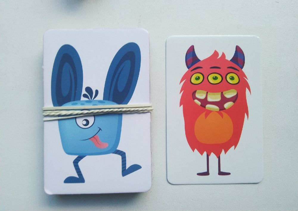 Монстриков мы купили уже давно, полюбовались, но не играли. А тут ребенок её нашел и решил поиграть. И оказалось, что в игре помимо плохой вырубки отсутствует одна карта.