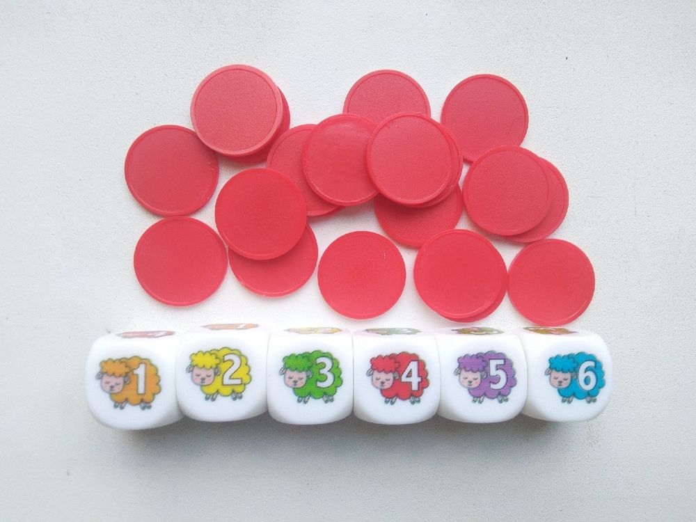 Предусмотрены 3 уровня сложности для разного возраста. Для самых маленьких (4-5 лет) - игра в 2 кубика: каждый игрок кидает по 2 кубика и складывает выпавшие значения, у кого сумма получилась больше - тот и берет себе жетон.