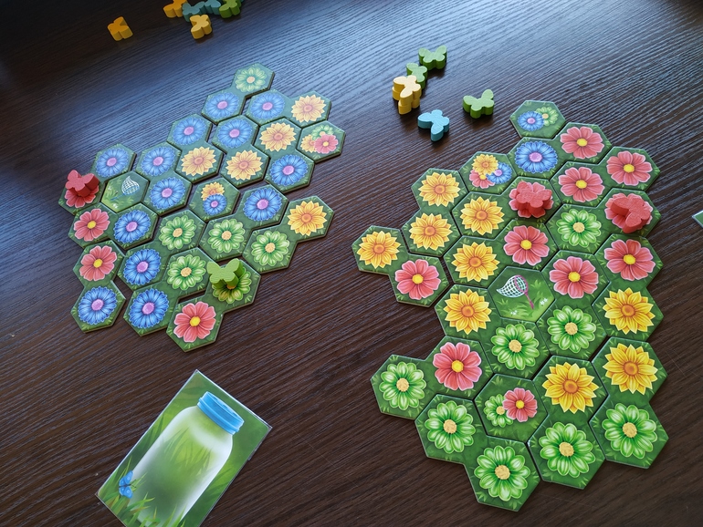Вначале мы играли по базовым правилам, потом добавили карты, с картами динамичнее и накаленнее я бы сказала. Но в целом классная игра, есть где подумать определенно. Взаимодействие между игроками почти нулевое, ну разве что в моменте выбора тайлов. Отличная семейная игра, из-за оформления наверное больше придется по душе женской части семьи...хотя..