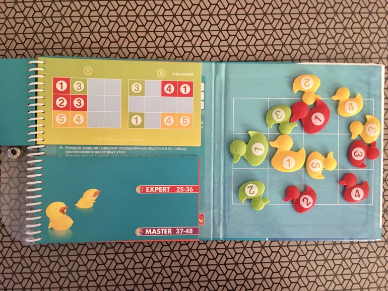 Не смотря на то, что дети сообщников проходили уток раньше заявленного возраста, мне головоломка не кажется простой. Здесь нужен опыт в принятии решений. Ноев ковчег в этом плане, например, проще, там можно методом подбора расположит детали, а в утках надо действовать с умом.