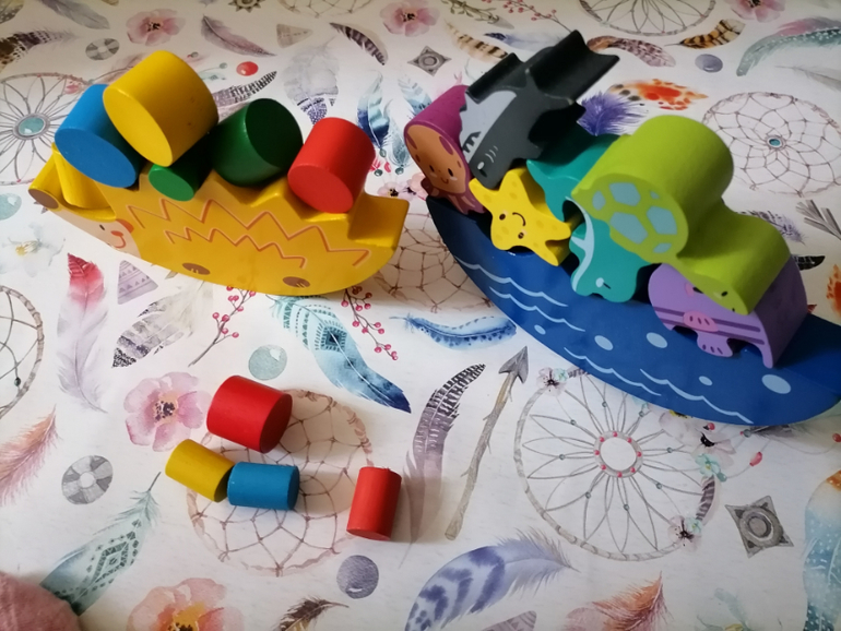 Когда-то давным-давно я купила пару балансиров в Фикс-прайс. Один из них, тот что с ёжиком и цилиндрами, я периодически разоряю, унося цилиндры в другие игры. Второй, морской, остался целым. В этот раз поиграли в оба варианта. Морской оказался почти по зубам всем участникам, а вот гладкие цилиндры то и дело разбегались у нас из-под пальцев. И это притом, что часть из них я унесла. Поскольку эти игры не пользуются популярностью у нас, так что я с чистой совестью планирую использовать все оставшиеся цилиндры, а морские друзья пусть ещё послужат.