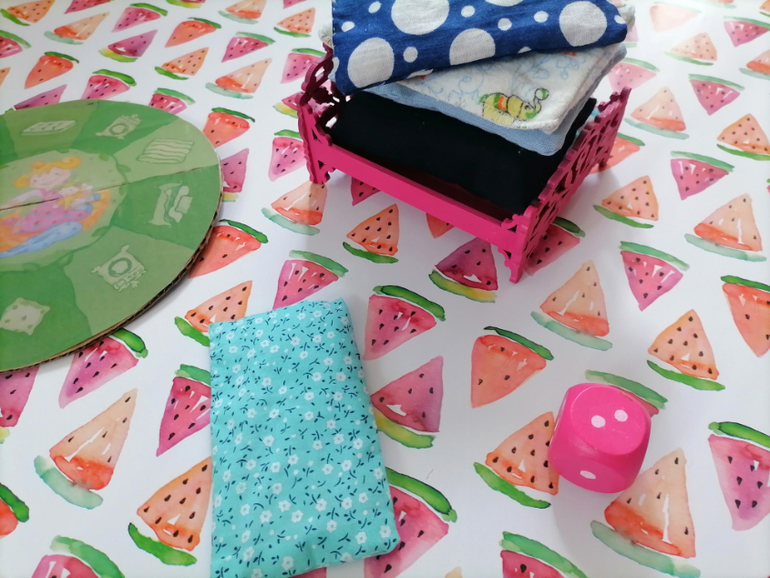 Принцесса на горошине (моя версия игры от Haba). Я уже писала о том, что игра эта эффектная, красивая, но при этом совершенно не сбалансированная на обеих сторонах поля (у нас старая версия поля, может, в новой всё иначе). Слишком часто приходится забирать предмет "в стирку" с верхушки горы постельных принадлежностей, и игра становится бесконечной. Чтобы не заниматься ерундой, мы решили с дочкой один раз перебрасывать кубик, если он приводит к стиральной машине. Из-за того, что игра очень милая, Лидочка часто предлагала играть в неё, невзирая на все проблемы игрового процесса. И наконец настал тот час, когда дочь согласилась с нем, чтобы отдать кровать и постельки игрушкам, в кукольный домик.