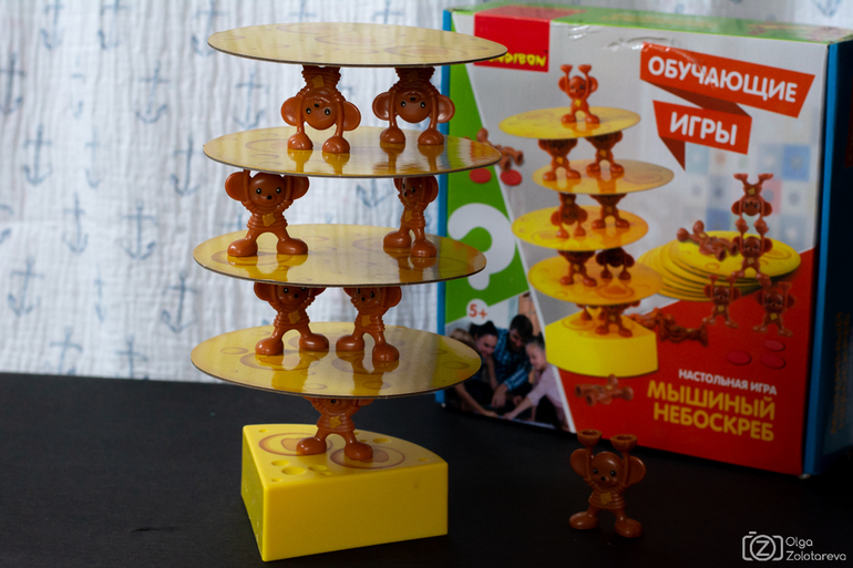 Мышиный небоскреб - ещё один балансир в нашей скромной коллекции. Смесь Суперносорога и Лягушачьего балансира, и по сложности что-то среднее между ними выходит. Нечасто, но достаём поиграть, в этот раз погремели падающим небоскрёбом с удовольствием.