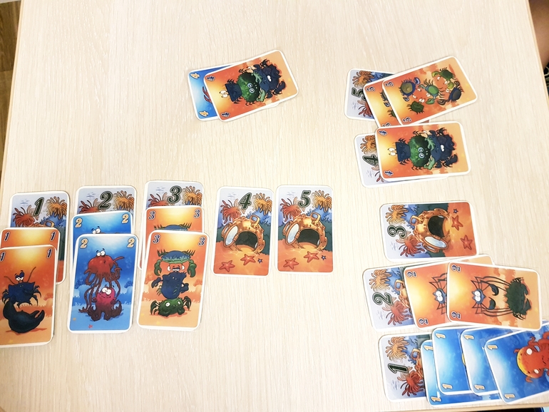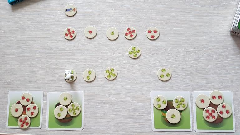 Игра хорошо заставляет думать - какую фишку взять себе, что сейчас, а что позже, что закрыть сопернику. Я выиграла, дочка редко в нее выигрывает, хотя я не особо сильный соперник. В этот раз я не заполнила свои корзины целиком, но поставила дочку в безвыходное положение - доступный жетон превышал лимит ее корзины, что означает проигрыш.