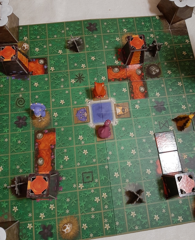 И эта была наша ошибка🙈 он решил опробовать новую стратегию и заграбастал себе все монетки, копя сразу на более ценные карты, еще и с долгим даунтаймом🤪 вообщем, это была очень тяжелая партия, больше мы с ним в эту игру не играем)