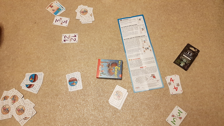 К нам с дочкой впервые за тысячу лет присоединился сын и мы втроём сыграли несколько раз в 13 привидений и Hols der Geier!