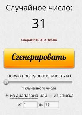 Ну и пора запускать генератор случайных чисел. Всего загадок было 76, все пронумерованы в соответствующих постах, так что авторы свои номерки знают.