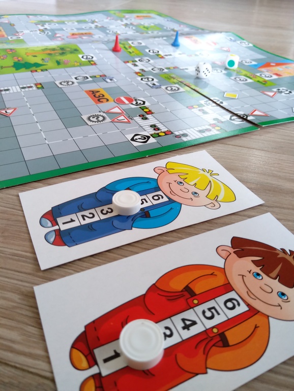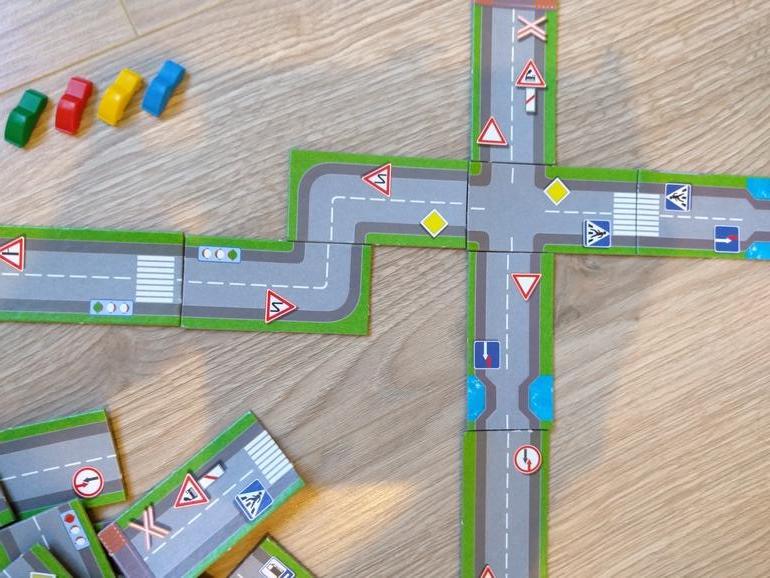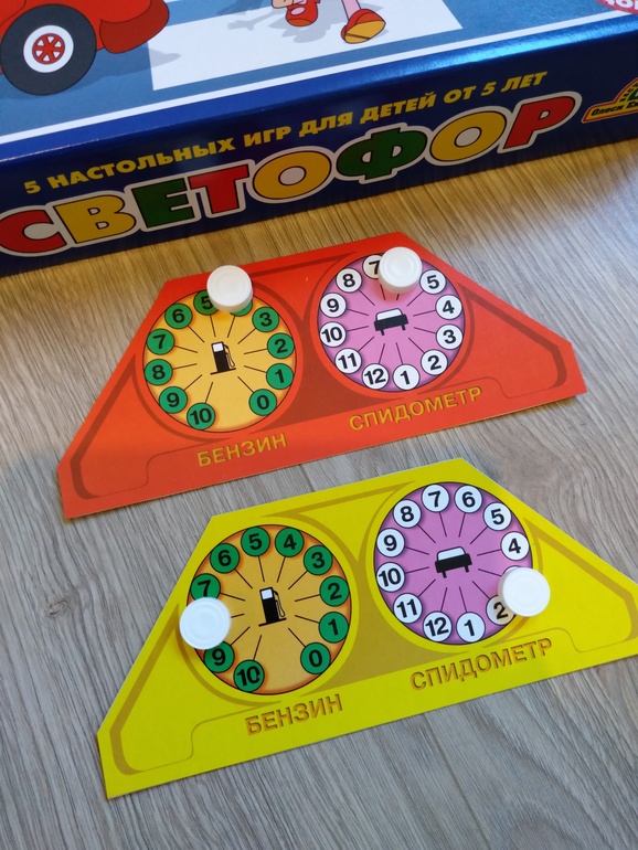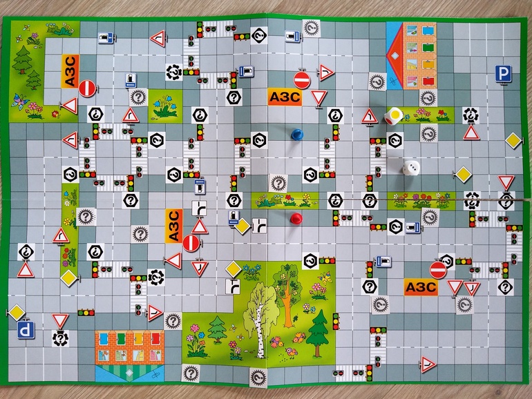 За сигналы светофора отвечает цветной кубик, за поток машин - d6. Большой поток - чётное значение, свободная дорога - нечётное (эти понятия в игре запоминаются на раз-два!). Кроме того, автомобилистам нужно следить за количеством бензина и не забывать вовремя пополнять бак, иначе придется плестись на эвакуаторе.